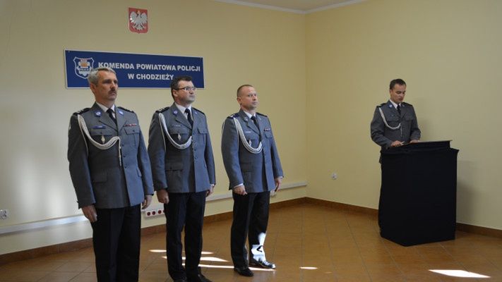 Uroczysta zbiórka rozpoczęła się złożeniem meldunku mł. insp. Rafałowi Pawłoskiemu. Następnie odczytany został rozkaz o powołaniu na stanowisku Komendanta Powiatowego Policji w Chodzieży mł. insp. Sławomira Sobańskiego.