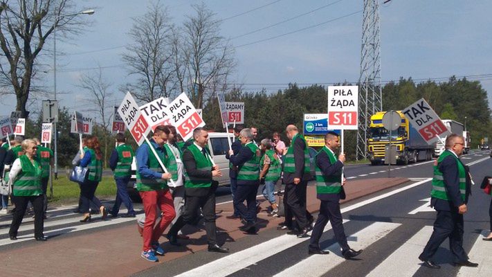 W Pile odbywa się walne zgromadzenie Stowarzyszenia Gmin i Powiatów "Droga S11". Przed zgromadzeniem członkowie stowarzyszenia przyjechali na obwodnicę Piły, by wziąć udział w blokadzie krajowej 10 i 11. Protest nie był zbyt uciążliwy dla kierowców, bo protestujący co kilka minut schodzili z jezdni, dając kierowcom przejechać.