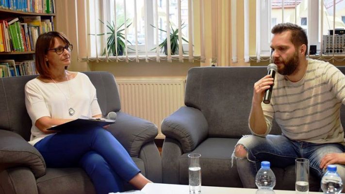 Na spotkaniu z czytelnikami opowiadał o tym skąd czerpie inspiracje, jak dojrzewał do pisania, wcześniej zawodowo zajmując się krytyką literacką oraz jakie ma plany i pomysły na kolejne kryminalne tomy.