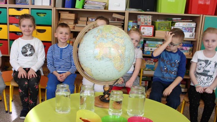 Przedszkolaki ćwiczyły umiejętność wnioskowania o zjawiskach przyrodniczych na podstawie obserwacji i doświadczeń: Jaka jest woda? Czy coś w tej wodzie jest? Co pływa w wodzie, a co tonie? Wsłuchiwały się w odgłosy wody i odgadywały poszczególne dźwięki (woda kapiąca z kranu, gotująca się w czajniku, napuszczana do wanny, płynąca w strumyku, deszcz). Wszystkie Wesołe Smyki już wiedzą, że woda jest niezbędnym źródłem życia i należy ją oszczędzać i dbać o jej zasoby.
