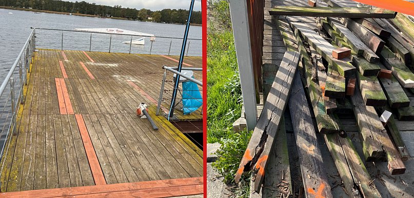 Dobiega końca remont pomostu i zjeżdżalni nad Jeziorem Margonińskim. Wymieniono najbardziej zniszczone elementy konstrukcji, a na plaży trwa przebudowa systemu odprowadzania wody. W planach są też nowe toalety i natryski.