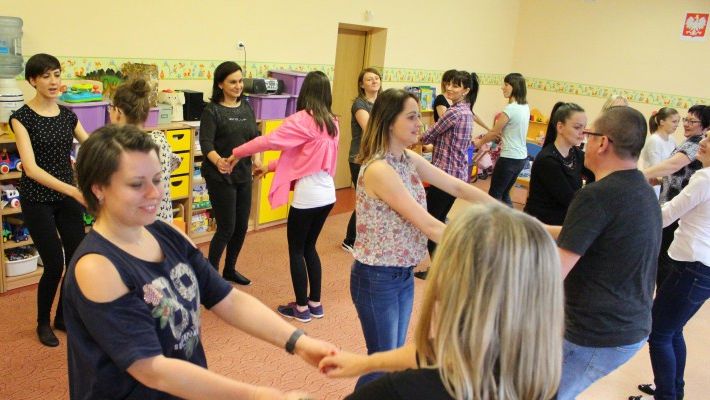 21 marca w Niepublicznym Przedszkolu Nr 3 „Wesoły Smyk” odbyły się warsztaty muzyczno – ruchowe dla nauczycieli pt. „Pierwszy dzień wiosny”. Celem warsztatów było zapoznanie z zabawami muzyczno – ruchowymi, tańcami na różne uroczystości. Taka forma szkolenia zawsze wzbudza wiele pozytywnych emocji wśród nauczycieli. Prowadzący pan Piotr zaproponował uczestnikom wiele ciekawych propozycji muzycznych. Podczas szkolenia panowała miła atmosfera oraz nauka połączona z zabawą.