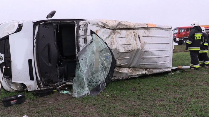 W okolicy Chrustowa kierujący samochodem dostawczym Renault Traffic na śliskiej jezdni nie opanował pojazdu i zjechał ze skarpy. Auto przewróciło się na bok.