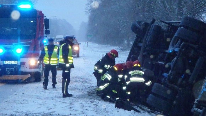 Wypadek samochodu ciężarowego na K-11 w Kierzkowicach