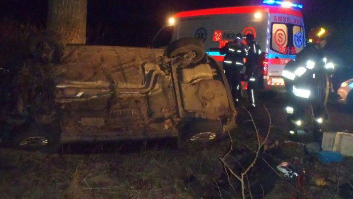 Wypadek samochodu w Trzaskowicach